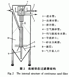 “連續(xù)過濾”(continuous sand filter)是近年來國外研制成功的一種新型過濾技術,在此基礎上,各國公司分別開發(fā)了新型的一體化水處理過濾設備。挪威Nordic Water公司的Dynasand,在過濾器中完成混合、混凝、過濾和反沖洗,連續(xù)過濾、連續(xù)反沖洗,無需反沖洗泵和反沖洗水箱,是一種高效節(jié)能的水處理設備。